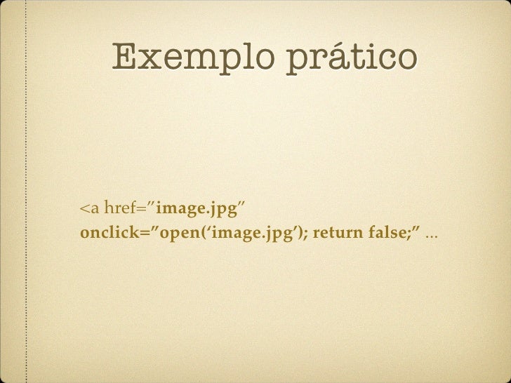 12. 12. Exemplo prático <a href=”image.jpg” onclick=”open(‘image.jpg’); return false;” ...
