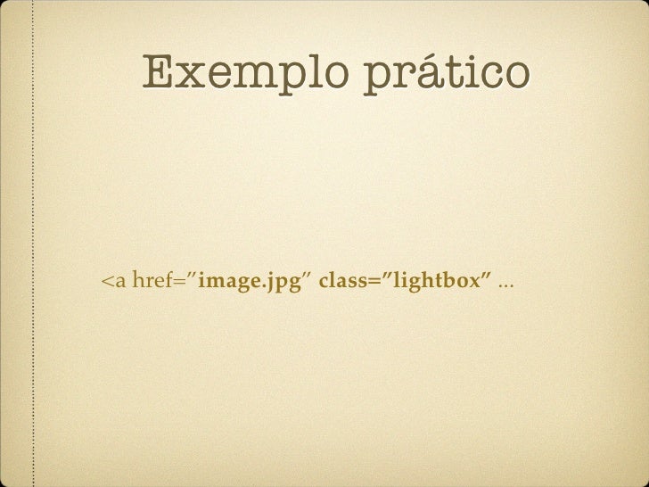 14. 14. Exemplo prático <a href=”image.jpg” class=”lightbox” ...