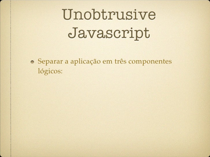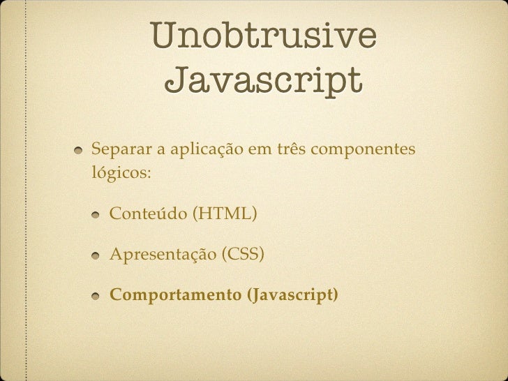 3. 3. Unobtrusive Javascript Separar a aplicação em três componentes lógicos: