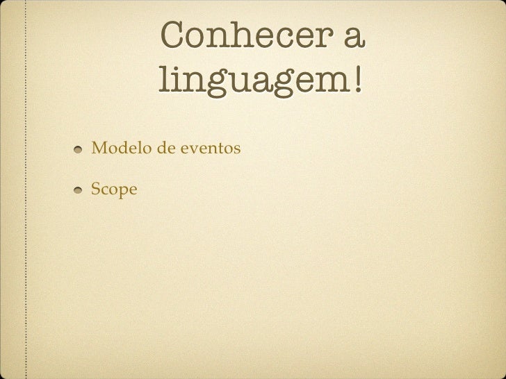 37. 37. Conhecer a linguagem! Modelo de eventos Scope Closures