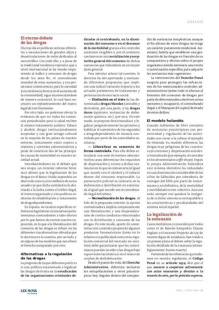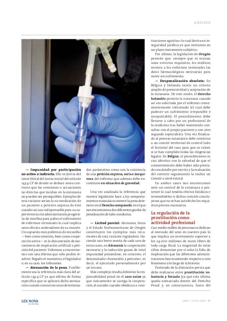 La posible legalización del comercio de drogas, la eutanasia y la prostitución