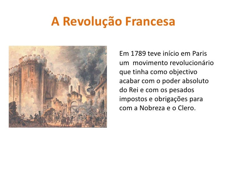 2. 2. A Revolução Francesa<br />Em 1789 teve início em Paris um movimento revolucionário que tinha como objectivo acabar com o poder absoluto do Rei e com os pesados impostos e obrigações para com a Nobreza e o Clero.<br />