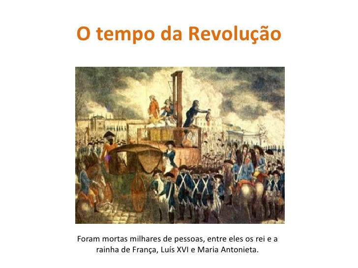 4. 4. O tempo da Revolução<br />Foram mortas milhares de pessoas, entre eles os rei e a rainha de França, Luís XVI e Maria Antonieta.<br />