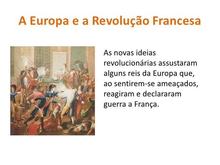 5. 5. A Europa e a Revolução Francesa<br />As novas ideias revolucionárias assustaram alguns reis da Europa que, ao sentirem-se ameaçados, reagiram e declararam guerra a França.<br />