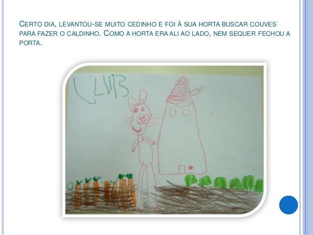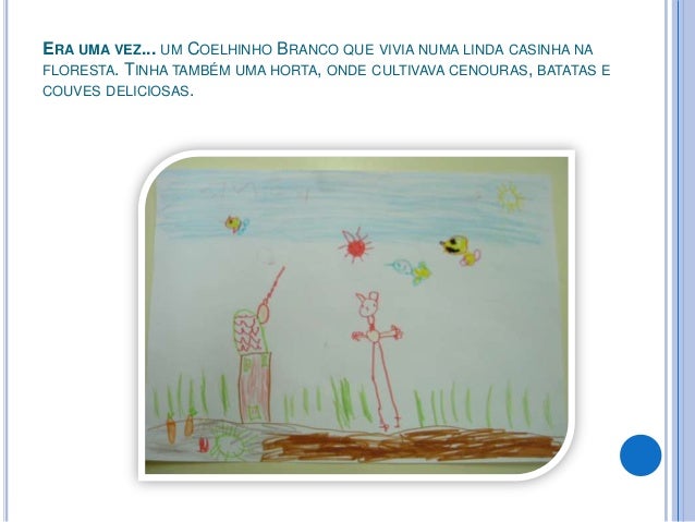 2. 2. ERA UMA VEZ... UM COELHINHO BRANCO QUE VIVIA NUMA LINDA CASINHA NAFLORESTA. TINHA TAMBÉM UMA HORTA, ONDE CULTIVAVA CENOURAS, BATATAS ECOUVES DELICIOSAS.