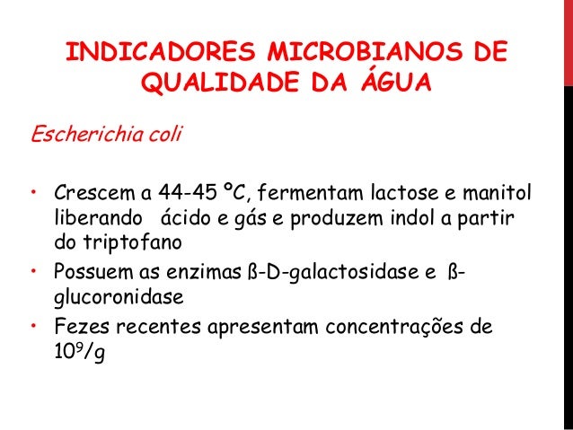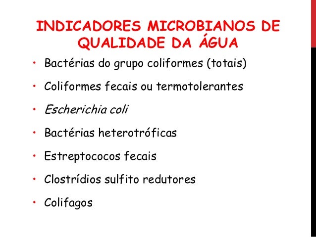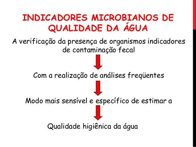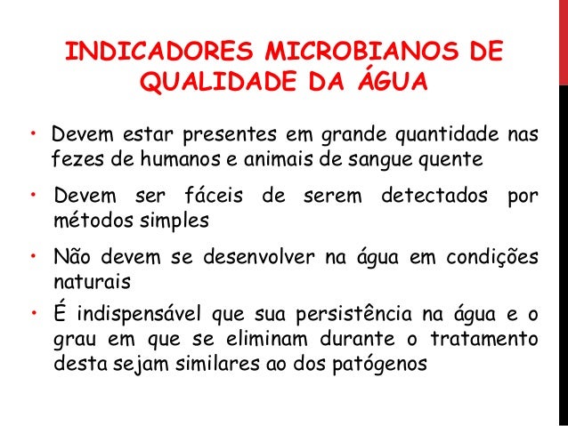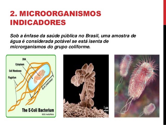 8. 8. 2. MICROORGANISMOS INDICADORES Sob a ênfase da saúde pública no Brasil, uma amostra de água é considerada potável se está isenta de microrganismos do grupo coliforme.