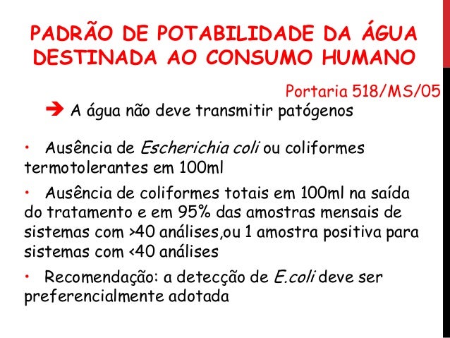 4. 4. Água potável: livre de microrganismos patogênicos e de agentes químicos e físicos nocivas
