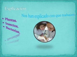 Un grupo de estudiantes visitó la Estación Experimental del Zaidín, donde Pepe, el director, explicó su trabajo en investigaciones sobre el medio ambiente y sistemas simbióticos. Estudian la modificación genética de plantas y analizan bacterias con microscopios para determinar su impacto en la salud y el entorno. La experiencia fue muy apreciada por los estudiantes, quienes la calificaron de genial.