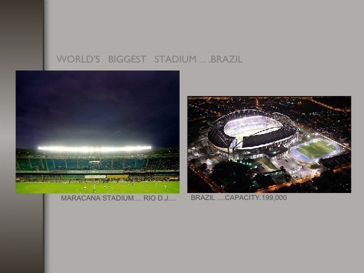 12. 12. WORLD'S   BIGGEST   STADIUM ... .BRAZIL BRAZIL ....CAPACITY.199,000 MARACANA STADIUM.... RIO D.J....