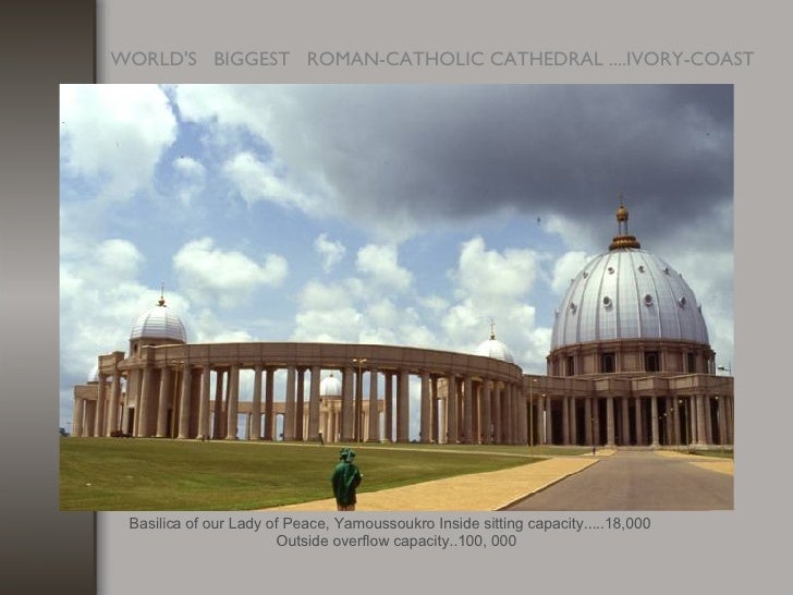 14. 14. WORLD'S   BIGGEST   ROMAN-CATHOLIC CATHEDRAL ....IVORY-COAST Basilica of our Lady of Peace, Yamoussoukro Inside sitting capacity.....18,000 Outside overflow capacity..100, 000