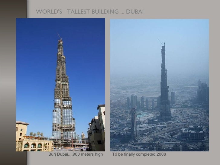 21. 21. WORLD'S   TALLEST BUILDING ... DUBAI To be finally completed 2008 Burj Dubai....900 meters high