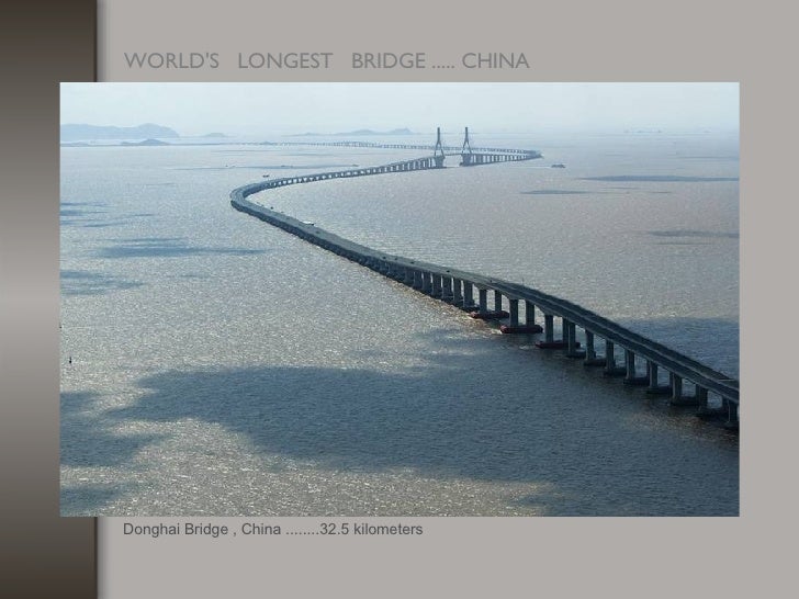 WORLD'S   LONGEST   BRIDGE ..... CHINA  Donghai Bridge , China ........32.5 kilometers