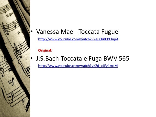 18. 18. • Vanessa Mae - Toccata Fugue http://www.youtube.com/watch?v=euOu89d3npA Original:• J.S.Bach-Toccata e Fuga BWV 565 http://www.youtube.com/watch?v=Zd_oIFy1mxM