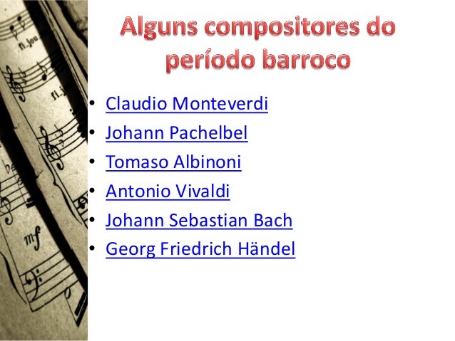 •   Claudio Monteverdi•   Johann Pachelbel•   Tomaso Albinoni•   Antonio Vivaldi•   Johann Sebastian Bach•   Georg Friedri...