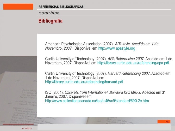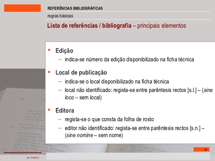 Regras básicas para aplicação em citações, listas de referências e bibliografias