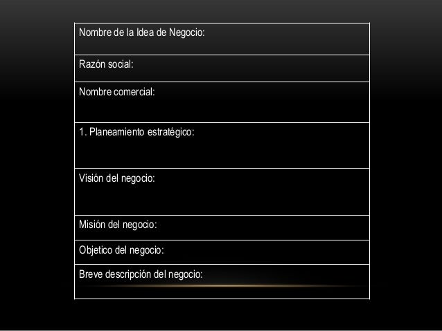 10. 10. Nombre de la Idea de Negocio:Razón social:Nombre comercial:1. Planeamiento estratégico:Visión del negocio:Misión del negocio:Objetico del negocio:Breve descripción del negocio: