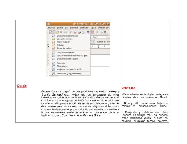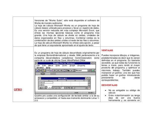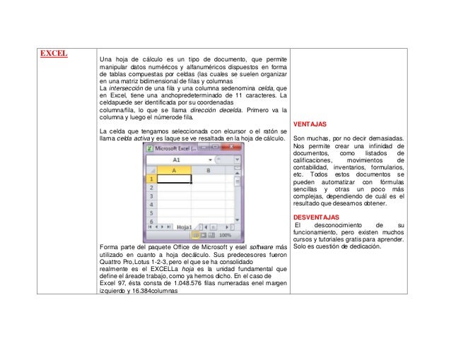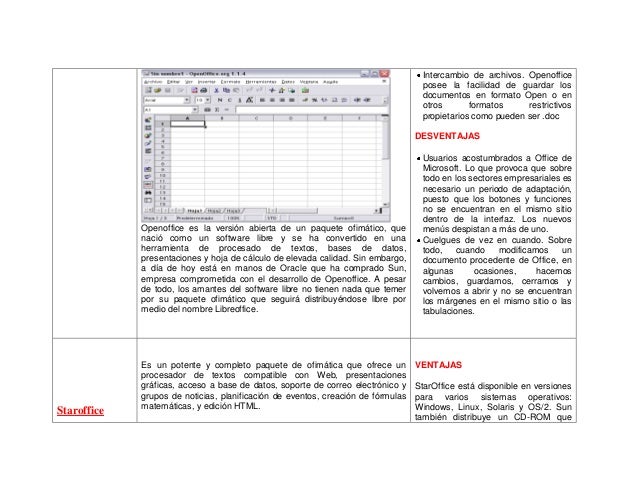 este es un cuadro comparativo de las diferentes hojas de calculos como exel, lotus, open office