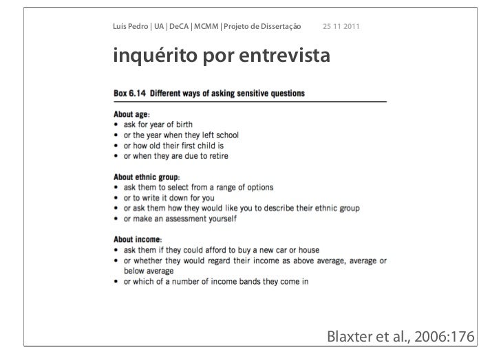 27. 27. Luís Pedro | UA | DeCA | MCMM | Projeto de Dissertação 25 11 2011inquérito por entrevista Blaxter et al., 2006:176