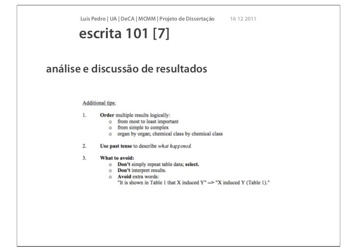 3. 3. Luís Pedro | UA | DeCA | MCMM | Projeto de Dissertação 16 12 2011escrita 101 | pistas geraisadap. de Tischler, M. Scientific Writing Booklet [http://www.biochem.arizona.edu/marc/Sci-Writing.pdf]