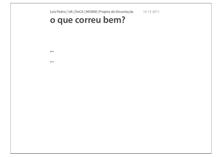 18. 18. Luís Pedro | UA | DeCA | MCMM | Projeto de Dissertação 16 12 2011o que correu bem?......