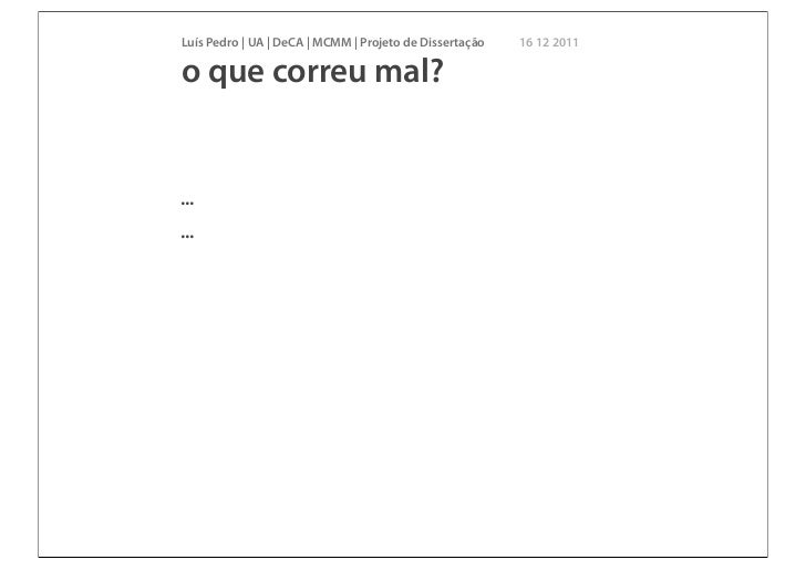 20. 20. Luís Pedro | UA | DeCA | MCMM | Projeto de Dissertação 16 12 2011o que correu mal?......