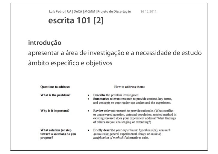 5. 5. Luís Pedro | UA | DeCA | MCMM | Projeto de Dissertação 16 12 2011 escrita 101 [2]introduçãoapresentar a área de investigação e a necessidade de estudoâmbito específico e objetivos
