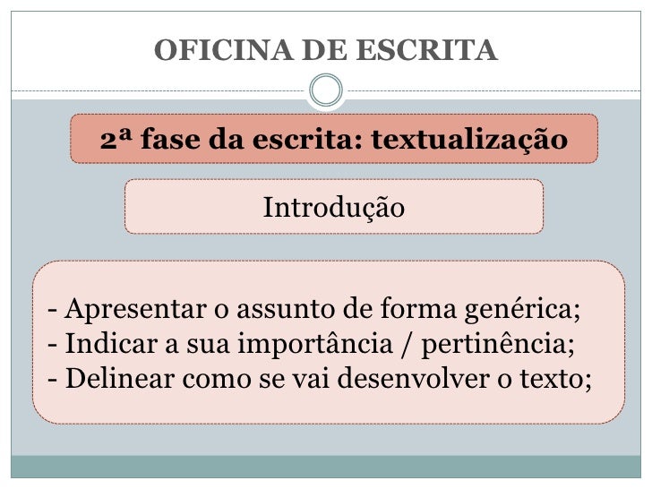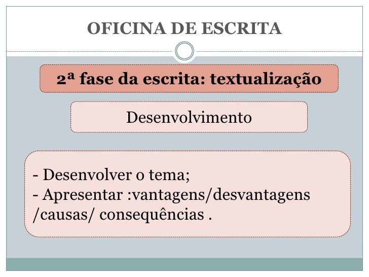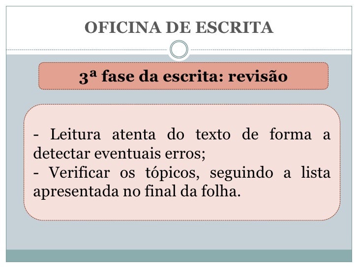 Descrição das diferentes fases que compõem uma oficna da escrita.