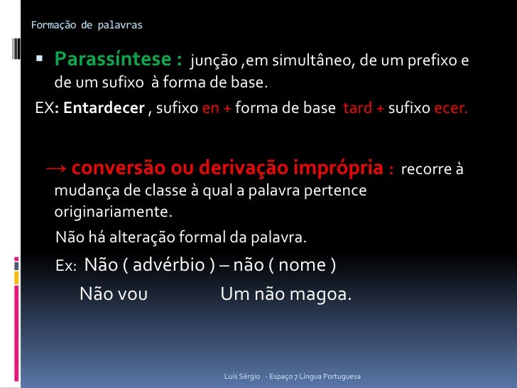 formação de palavras , língua portuguesa, conhecimento explícito da língua.