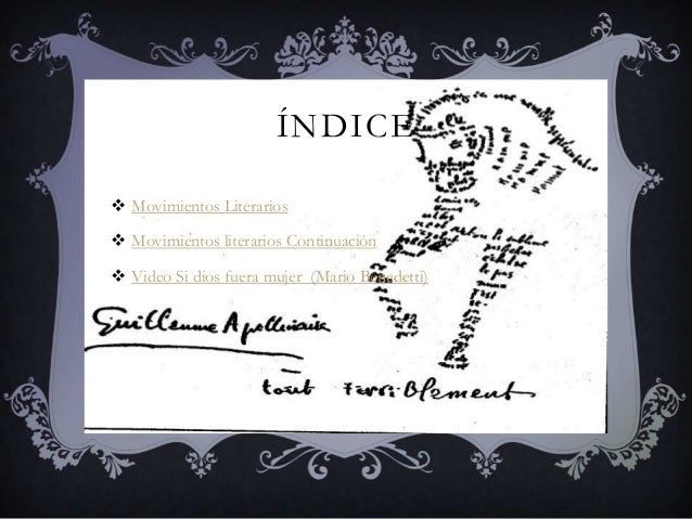 1. 1. ÍNDICE Movimientos Literarios Movimientos literarios Continuación Video Si dios fuera mujer (Mario Benedetti)