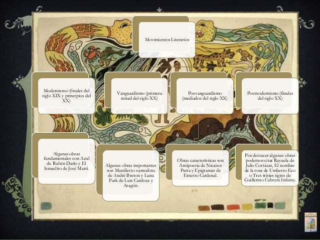 Movimientos Literarios Modernismo (finales delsiglo XIX y principios del        Vanguardismo (primera              Posvang...