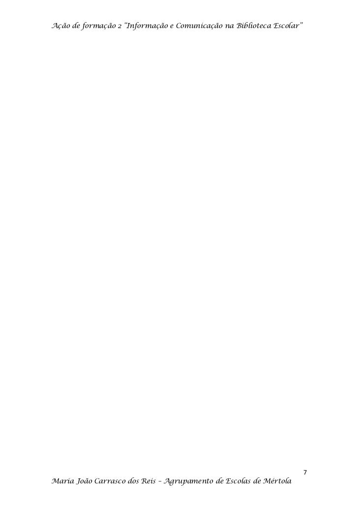 7. 7. Ação de formação 2 “Informação e Comunicação na Biblioteca Escolar” 7Maria João Carrasco dos Reis – Agrupamento de Escolas de Mértola