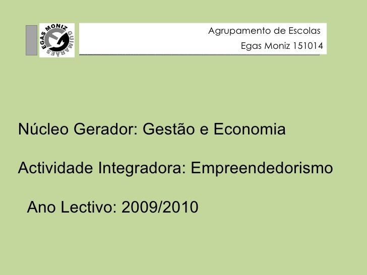 5. 5.     Núcleo Gerador: Gestão e Economia Actividade Integradora: Empreendedorismo Ano Lectivo: 2009/2010 Agrupamento de Escolas Egas Moniz 151014