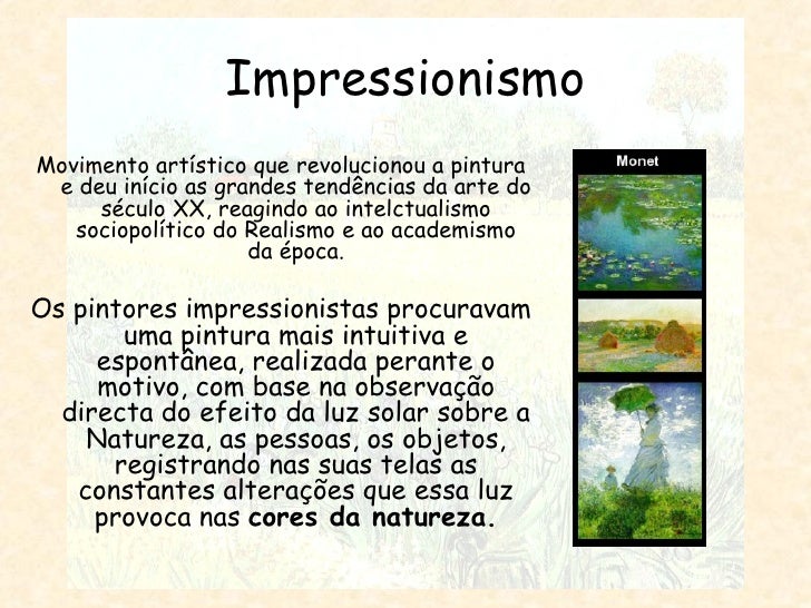 Ideias base do Impressionismo. Monet, Manet, Renoir e Degas. Neo-Impressionismo: Seurat e Signac