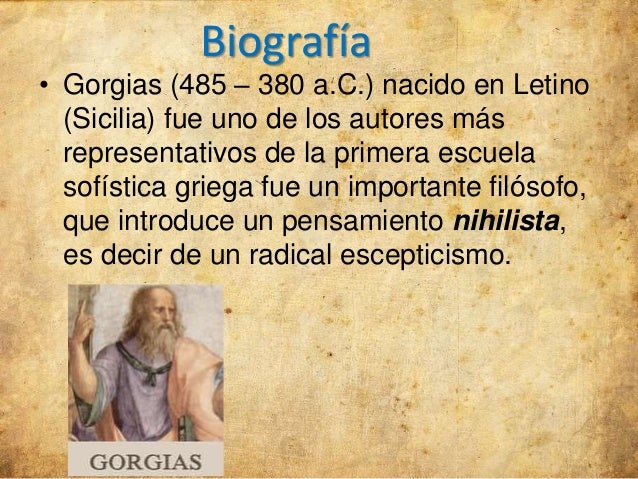 una biografia y descripción no muy extensa de gorgias