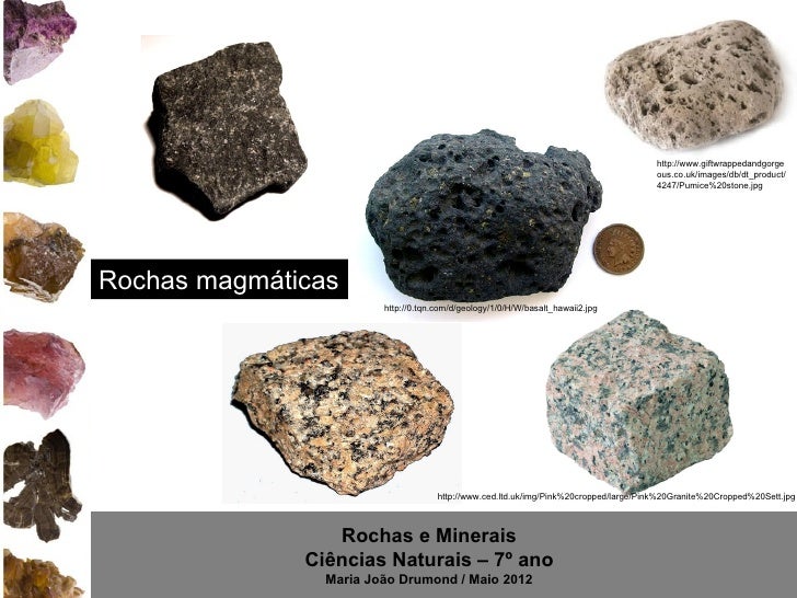 16. 16. http://www.giftwrappedandgorge ous.co.uk/images/db/dt_product/ 4247/Pumice%20stone.jpgRochas magmáticas http://0.tqn.com/d/geology/1/0/H/W/basalt_hawaii2.jpg http://www.ced.ltd.uk/img/Pink%20cropped/large/Pink%20Granite%20Cropped%20Sett.jpg Rochas e Minerais Ciências Naturais – 7º ano Maria João Drumond / Maio 2012