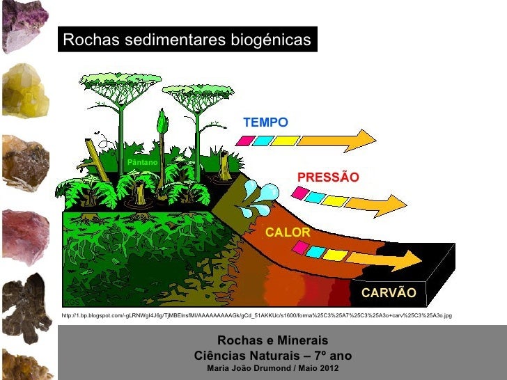 23. 23. Rochas sedimentares biogénicashttp://1.bp.blogspot.com/-gLRNWgI4J6g/TjMBElnsfMI/AAAAAAAAAGk/gCd_51AKKUc/s1600/forma%25C3%25A7%25C3%25A3o+carv%25C3%25A3o.jpg Rochas e Minerais Ciências Naturais – 7º ano Maria João Drumond / Maio 2012