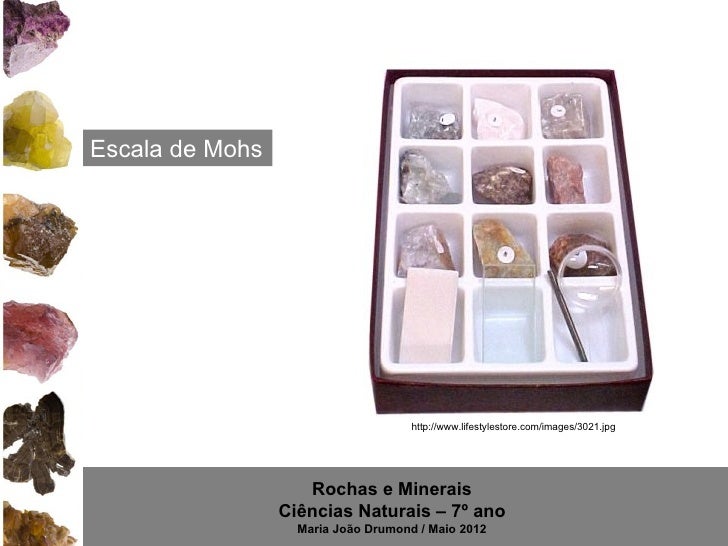 7. 7. Propriedades dos minerais: dureza http://heartjoia.com/wp-content/uploads/2010/07/dureza-relativa.jpg Rochas e Minerais Ciências Naturais – 7º ano Maria João Drumond / Maio 2012