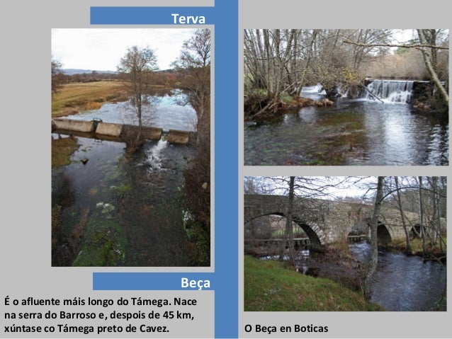 24. 24. Terva Beça É o afluente máis longo do Támega. Nace na serra do Barroso e, despois de 45 km, xúntase co Támega preto de Cavez. O Beça en Boticas