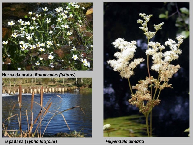 45. 45. Herba da prata (Ranunculus fluitans) Espadana (Typha latifolia) Filipendula ulmaria