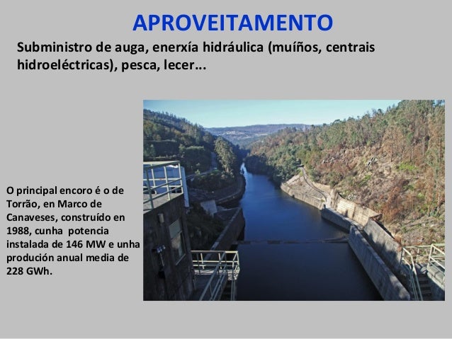 50. 50. APROVEITAMENTO Subministro de auga, enerxía hidráulica (muíños, centrais hidroeléctricas), pesca, lecer... O principal encoro é o de Torrão, en Marco de Canaveses, construído en 1988, cunha potencia instalada de 146 MW e unha produción anual media de 228 GWh.