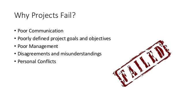 11. 11. Why Projects Fail? • Poor Communication • Poorly defined project goals and objectives • Poor Management • Disagreements and misunderstandings • Personal Conflicts