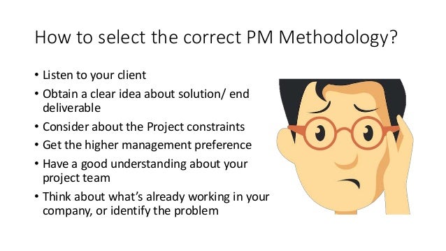 20. 20. How to select the correct PM Methodology? • Listen to your client • Obtain a clear idea about solution/ end deliverable • Consider about the Project constraints • Get the higher management preference • Have a good understanding about your project team • Think about what’s already working in your company, or identify the problem