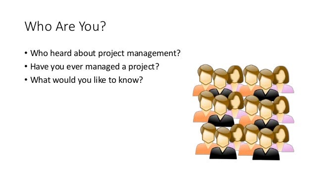 3. 3. Who Are You? • Who heard about project management? • Have you ever managed a project? • What would you like to know?