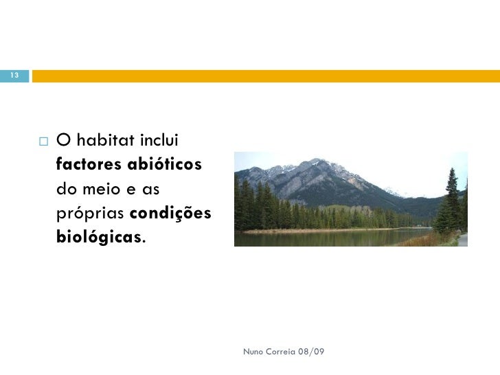 13. 13. 13  O habitat inclui factores abióticos do meio e as próprias condições biológicas. Nuno Correia 08/09