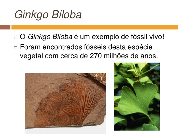 10. 10. GinkgoBiloba<br />O GinkgoBilobaé um exemplo de fóssil vivo!<br />Foram encontrados fósseis desta espécie vegetal com cerca de 270 milhões de anos.<br />
