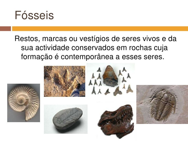 2. 2. Fósseis<br />Restos, marcas ou vestígios de seres vivos e da sua actividade conservados em rochas cuja formação é contemporânea a esses seres.<br />