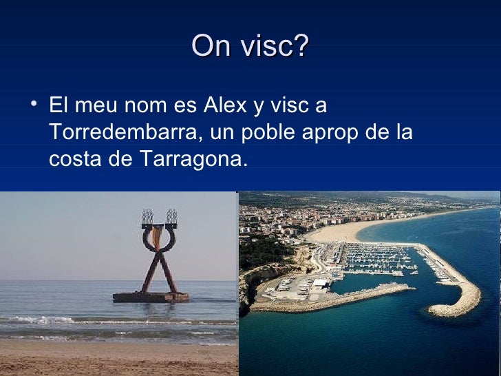 2. 2. On visc?• El meu nom es Alex y visc a Torredembarra, un poble aprop de la costa de Tarragona.