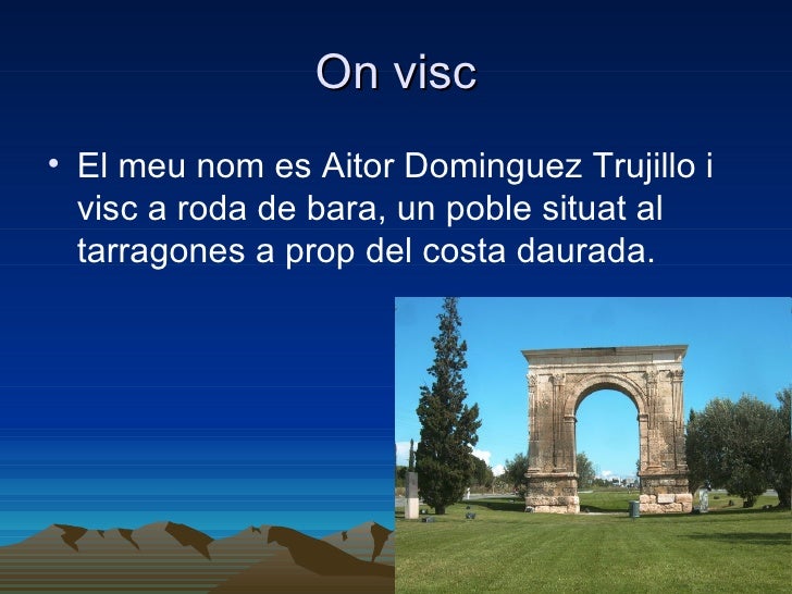 3. 3. On visc• El meu nom es Aitor Dominguez Trujillo i visc a roda de bara, un poble situat al tarragones a prop del costa daurada.