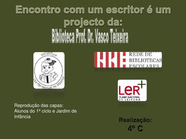 24. 24. Encontro com um escritor é um projecto da:<br />Biblioteca Prof. Dr. Vasco Teixeira<br />Reprodução das capas: <br />Alunos do 1º ciclo e Jardim de Infância<br />Realização:<br />4º C<br />