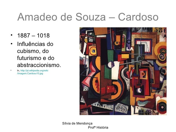 3. 3. Amadeo de Souza – Cardoso <ul><li>1887 – 1018 </li></ul><ul><li>Influências do cubismo, do futurismo e do abstraccionismo. </li></ul><ul><li>In, http:// pt.wikipedia.org / wiki /Imagem:Cardoso10.jpg </li></ul>Sílvia de Mendonça Profª História